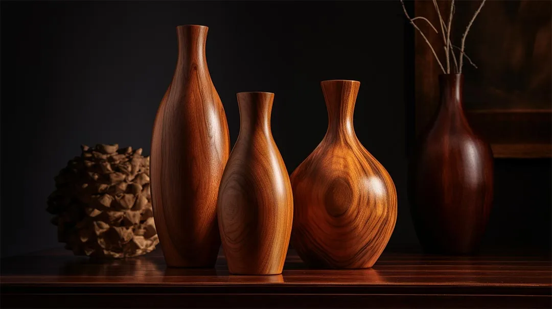 Wood: Decorative boxes, wall art, vases, lanterns, candle holders.