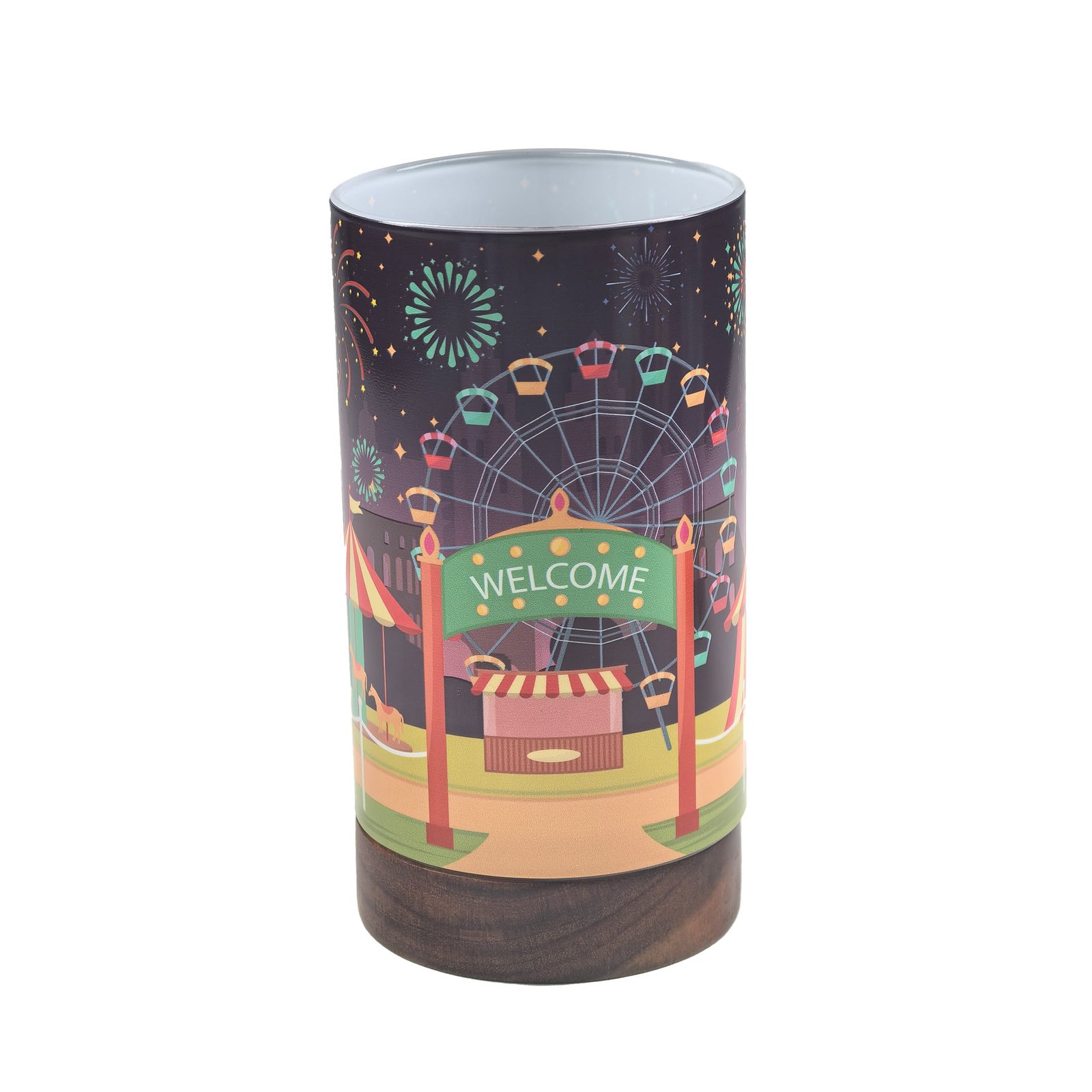 Rechargeable LED touch – switch base + fully customizable glass cylinder —— laser engraving, UV printing, frosted texture.